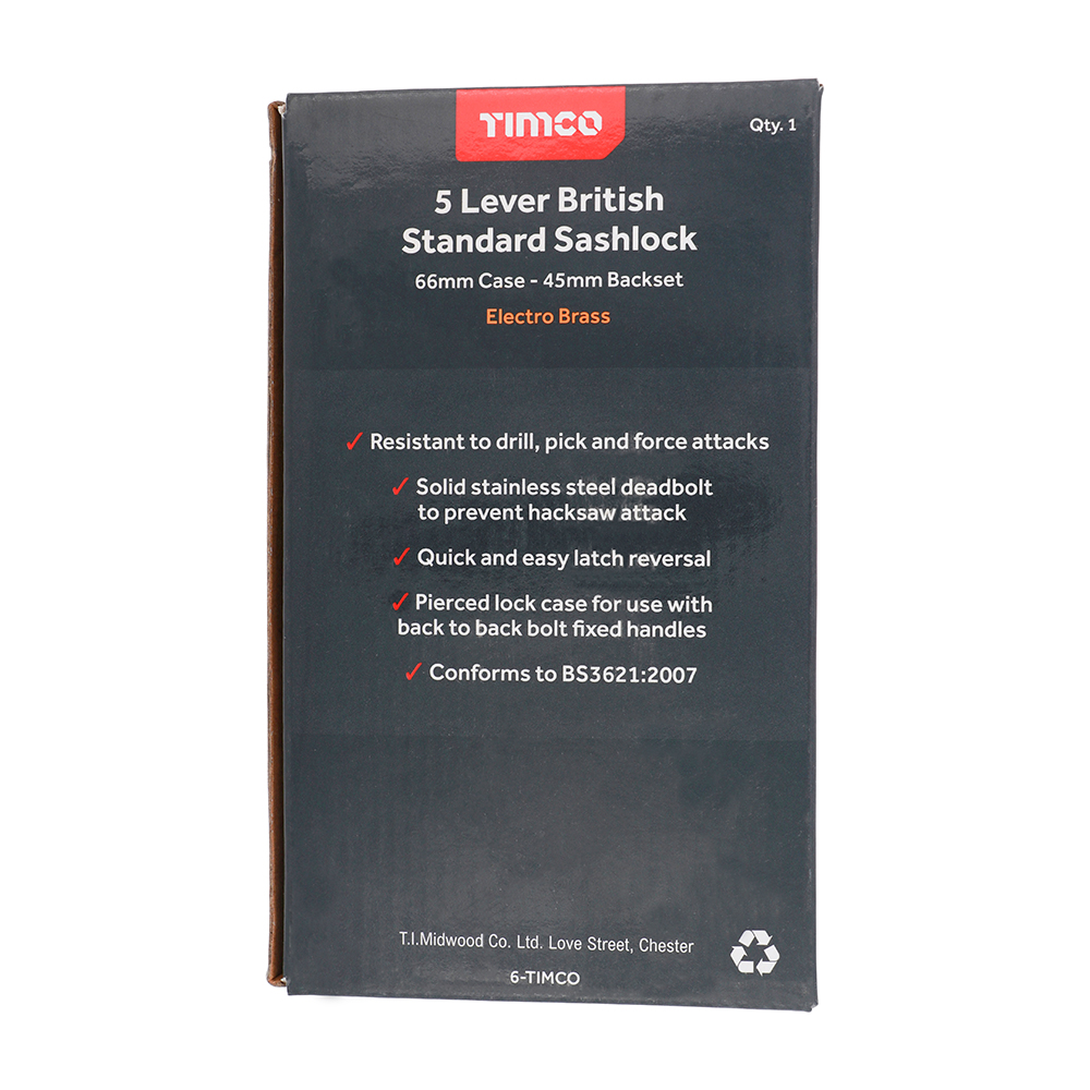 5 Lever BS Sashlock E. Brass 66 case / 45 backset 1 Each