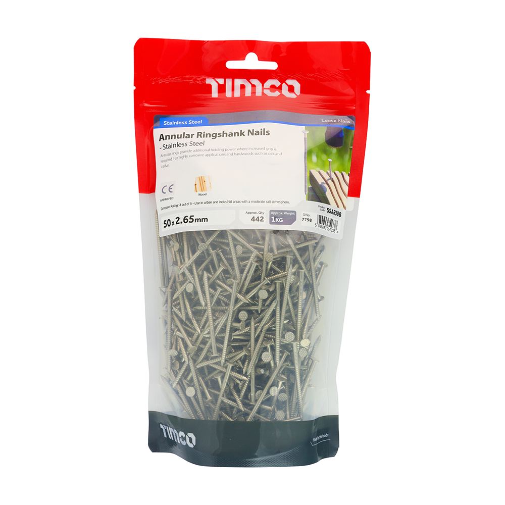 Annular Ringshank Nail – A2 SS 50 x 2.65 1 Kilograms